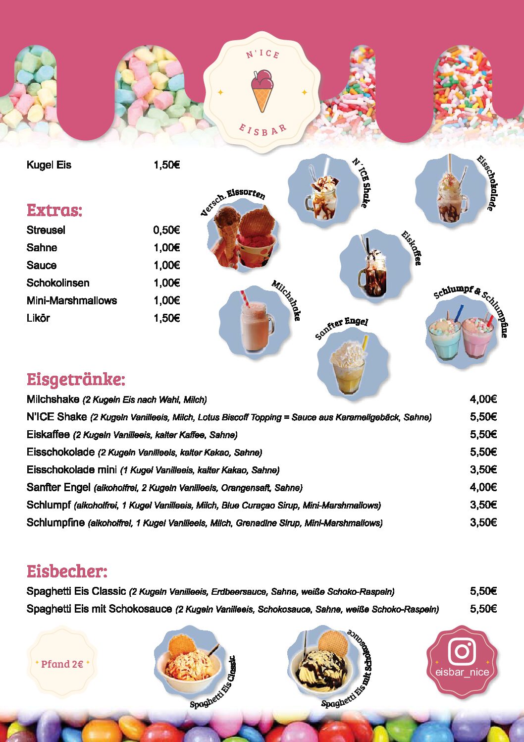 Hier gibt es nicht nur Eis in der Waffel oder im Becher, sondern auch: Eiskaffee, Eisschokolade, Milchshakes, Schlumpf , Schlumpfine, Spaghetti Eis uvm.